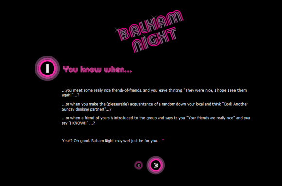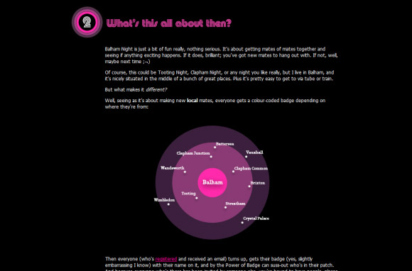 The result was Balham Night! Two real-life get-togethers organised entirely via the web, with 40 people at the first, 130 people at the second, and 300 on the mailing list by the end.